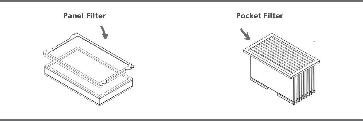 Panel filters are the standard filters fitted to most machines, whereas the pocket filters can be fitted as optional accessories for machines including the Fimap FSR. Pocket filters have better dust control due to the extra panels that make up the filter.
